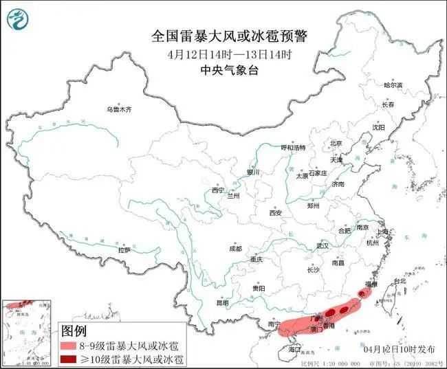 中央气象台4月12日10时发布强对流天气蓝色预警: