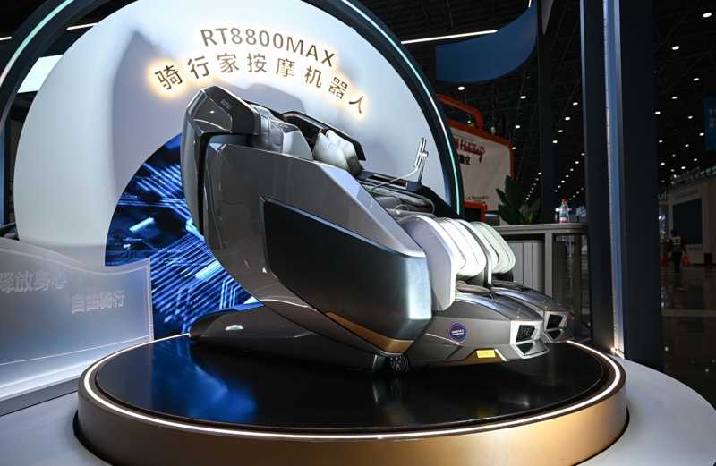 第五届消博会主会场的按摩机器人成为亮点。新华社照片。