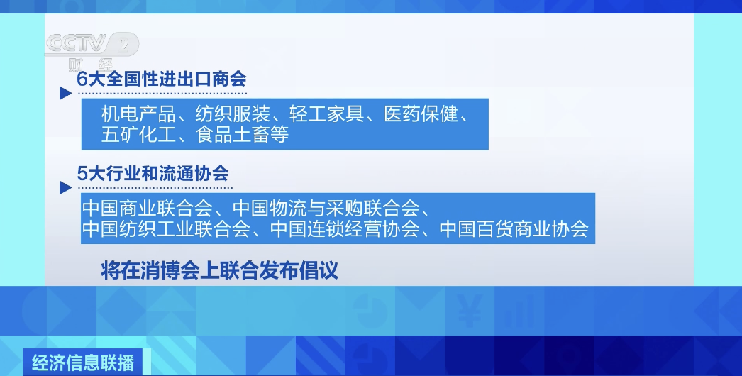 据悉,机电产品、纺织服装、轻工家具、医药保健、五矿化工、食品土畜等6大全国性进出口商会,以及中国商业联合会、中国物流与采购联合会、中国纺织工业联合会、中国连锁经营协会、中国百货商业协会等5大行业和流通协会,将在消博会上联合倡议,响应“外贸优品中华行”,助力企业拓展渠道、对接品牌。