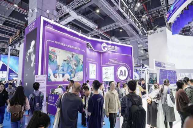 在5.1手术机器人展区,微创和术锐两大公司展示了最新的医疗科技成果。微创集团通过AI技术融合,实现了机器人手术的全自动化探索,展出了多款智能手术机器人,彰显我国高端医疗装备的历史性跨越。