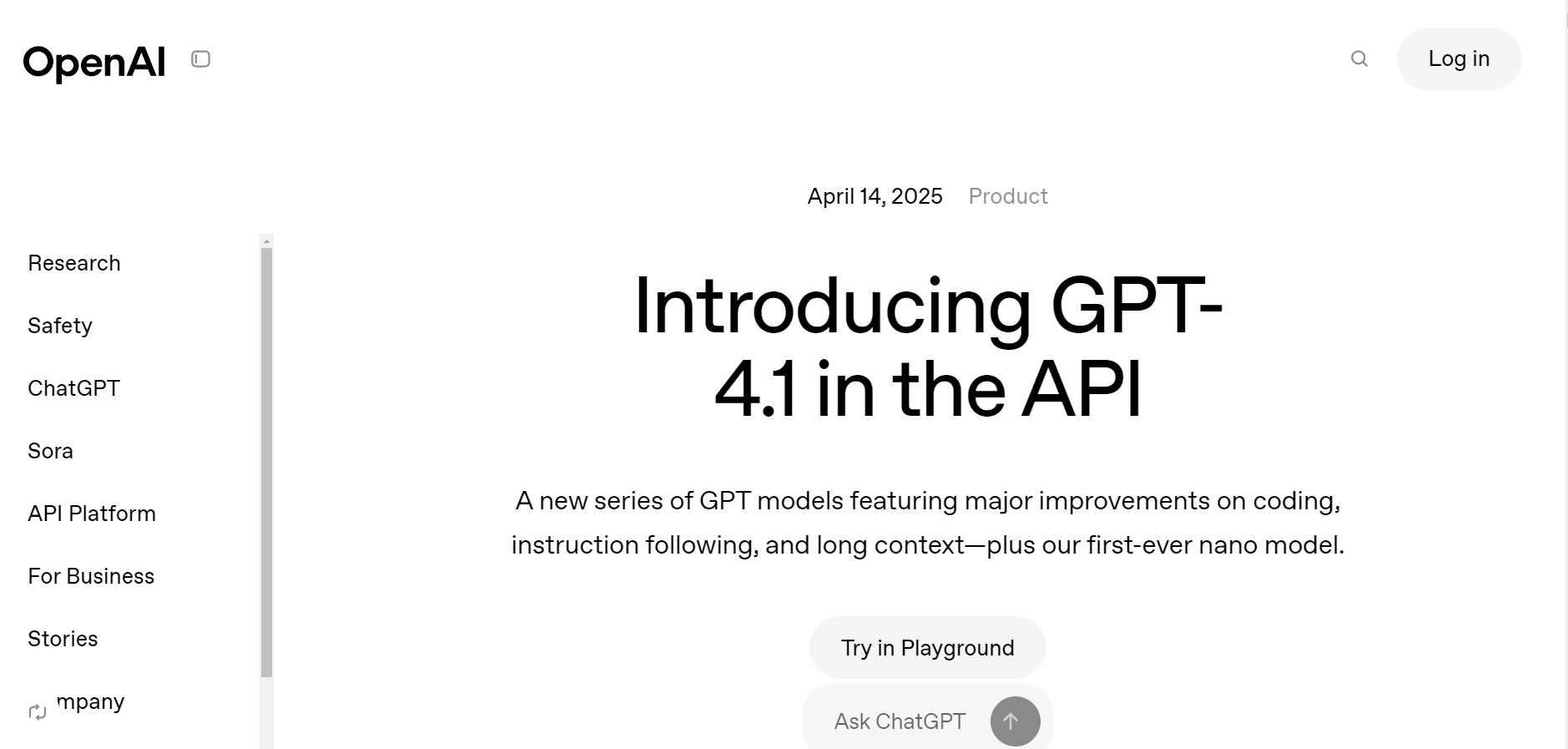 OpenAI发布GPT-4.1,金融分析领域迎新突破