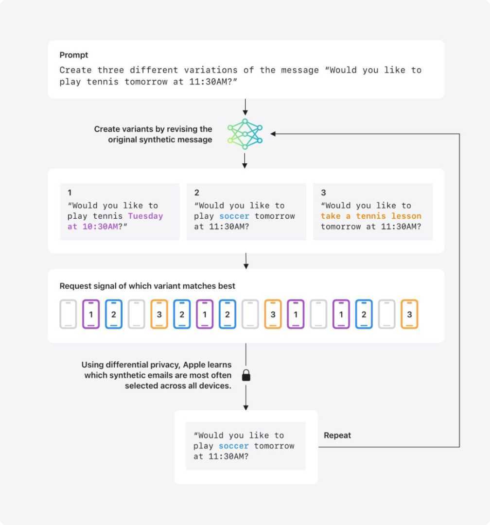 4月14日,苹果在其机器学习研究官方博客中宣布了这一变化,强调在生成合成数据时,目标是创造出与真实邮件在话题和风格上高度相似的句子或邮件,以改进摘要模型,同时不收集任何用户邮件数据。