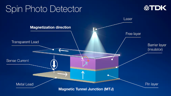 根据TDK官方新闻稿,这款磁性器件由TDK构思开发,可探测近红外和可见光,应用了磁隧道结(MTJ)技术,主要优势在于使用了单晶基板,不涉及晶体生长。