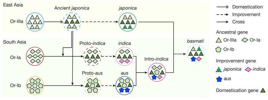 亚洲栽培稻进化路线图展示了稻种的驯化历程。