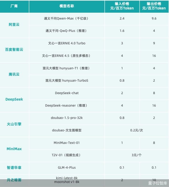 基于对国内上千款AI产品的长期追踪、数据统计和分析研究,量子位智库于4月16日发布了国内AIGC应用的竞争格局报告。报告中梳理了3月阿里云、百度智能云、腾讯云、Deepseek等多款模型的输入输出价格,展示了新模型架构和训练策略优化如何推动大模型普惠。