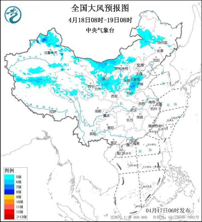 中央气象台4月17日06时继续发布大风蓝色预警,提醒公众及各行业注意防范: