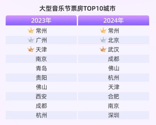 大型音乐节在各区域多点开花,常州领跑城市票房,三四线城市票房占比达29.1%,同比增长3.8%,场次占比34.9%,显示出音乐节市场的广泛覆盖和强劲增长。