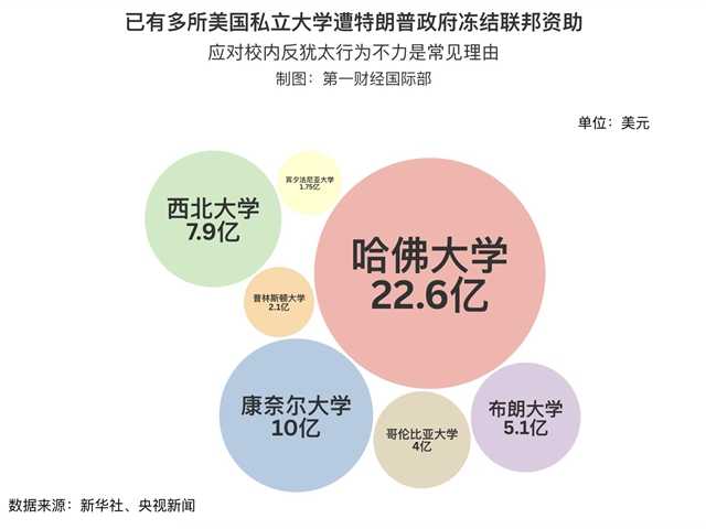 据央视新闻报道,4月14日,因哈佛大学拒绝白宫要求,特朗普政府宣布冻结约22.6亿美元拨款和6000万美元合同选项。次日,特朗普威胁取消哈佛免税地位。哈佛大学校长加伯称,联邦政府的要求“前所未有”,构成对“智识环境”的直接干预。