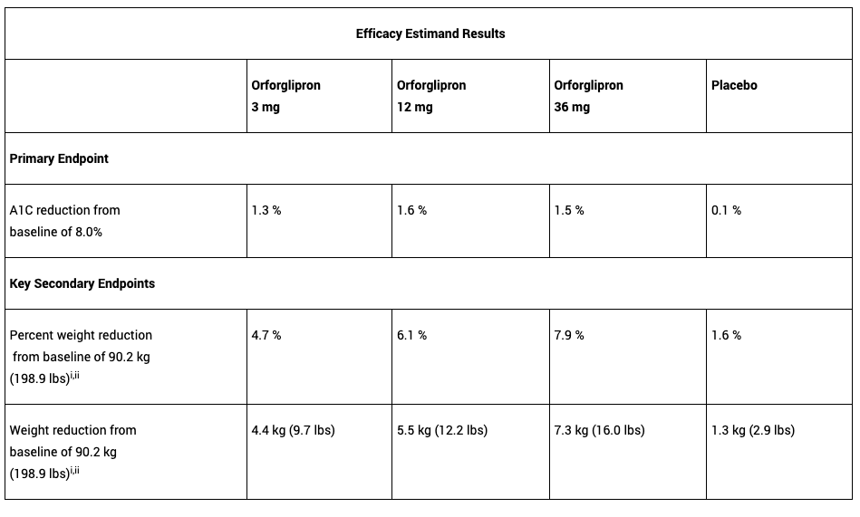 然而,降糖效果的数据略低于部分分析师的预期,他们原本预期降幅能达到1.8%至2.1%。尽管如此,Orforglipron的减重效果依然亮眼,最高剂量组的受试者在40周内平均减重16磅(7.9%)。