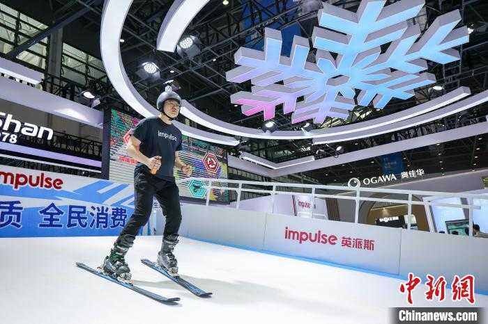 4月15日,第五届中国国际消费品博览会在海口举行,多款智能体育健身装备亮相,展现健康消费热潮。图为参展商展出的数字滑雪模拟机。 中新网记者骆云飞摄
