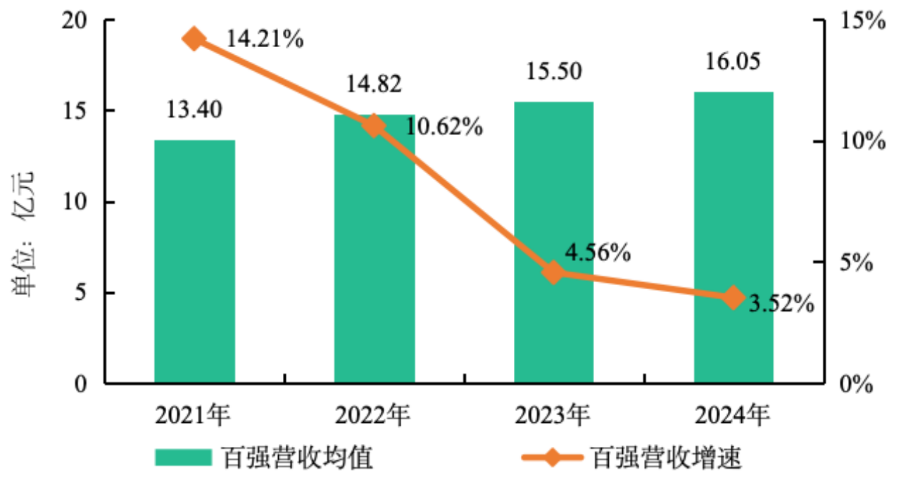 2021~2024年百强企业营业收入均值与增速情况来源:中指研究院