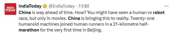 报道纷纷聚焦此次人形机器人与人类一同登上马拉松赛场的历史性时刻,并对比赛中机器人的优异表现感到惊讶。此次赛事积极推动发展机器人技术、人工智能技术,获得了全球多国媒体的高度认可。