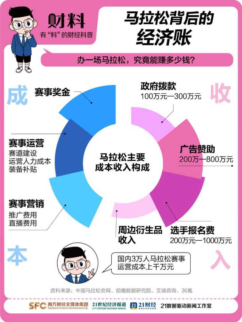 举办一场马拉松赛事,成本高达千万元,但其带来的收益也相当可观。据第三方数据显示,政府拨款通常在100万元至300万元之间,广告赞助则在200万元至800万元,报名费更是高达200万元至1000万元,除此之外,还有周边产业的盈利。这股马拉松热潮,不仅体现了大众对健康生活的追求,更是城市经济发展的新动力!