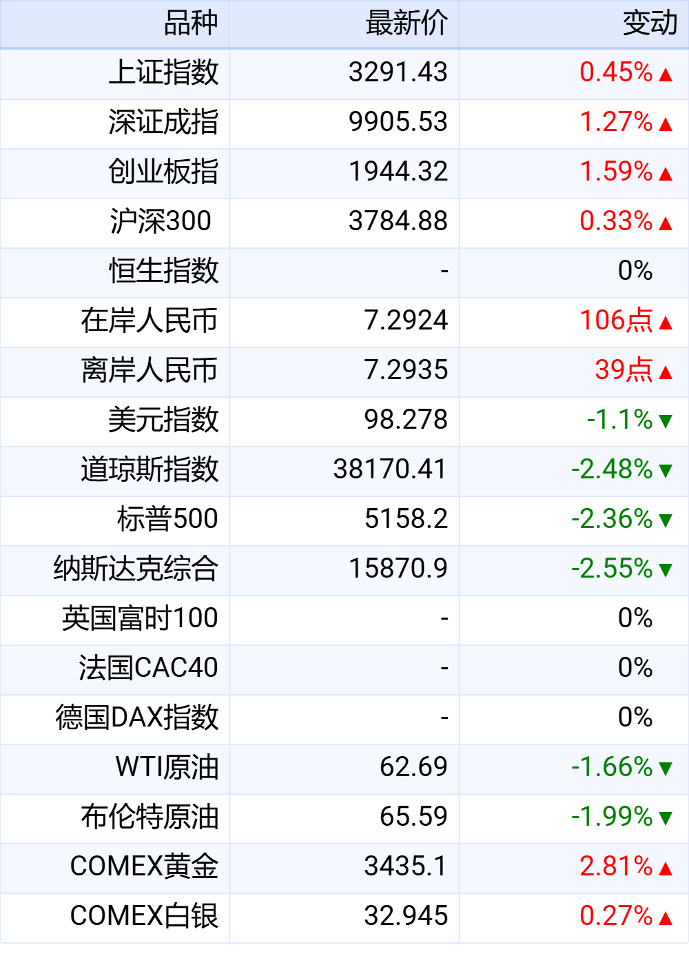海光信息一季度营收和净利润大幅增长,合同负债达32.37亿元。上海黄金交易所提示投资者做好贵金属投资风险防范工作。京东发布公开信,保障骑手在各平台自由接单。美国总统特朗普继续攻击美联储主席鲍威尔,要求降息,市场对美联储独立性担忧加剧,导致美元指数大跌,美股全线重挫。