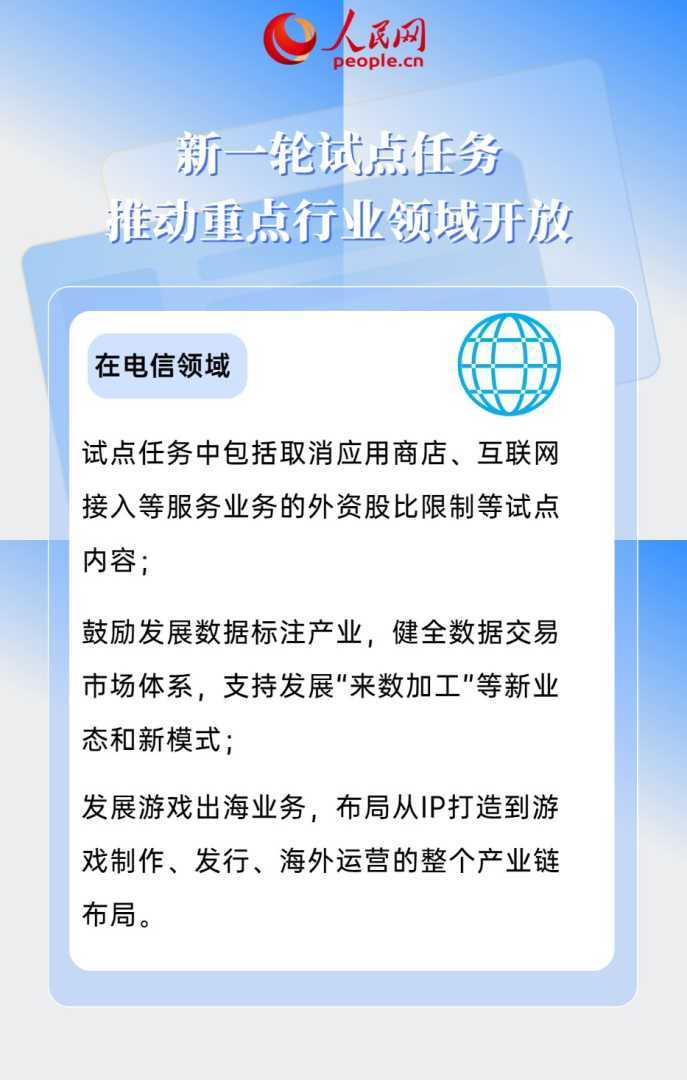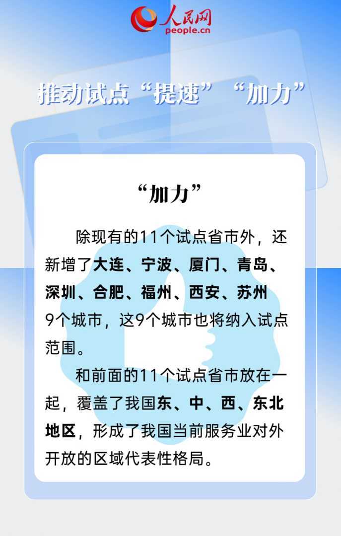 (文章来源:人民网)服务业的扩大开放不仅有助于提升国内服务质量和效率,还能促进产业升级和经济发展。未来,随着试点工作的深入推进,预计将有更多领域受益于这一政策。