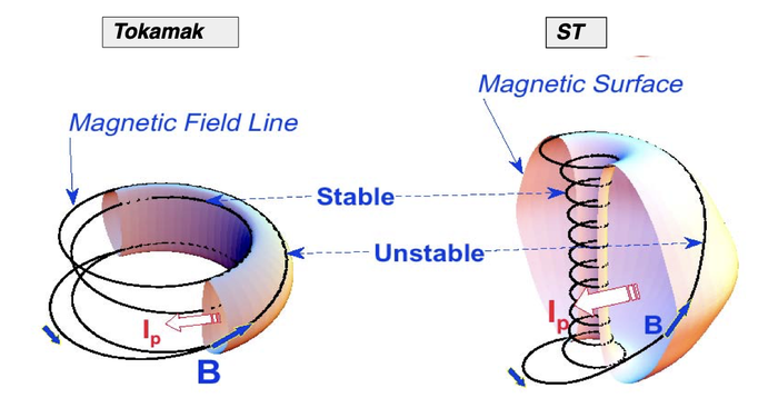 左图为传统托克马克,右图为球形环,图片来源:普林斯顿等离子体物理实验室(PPPL)