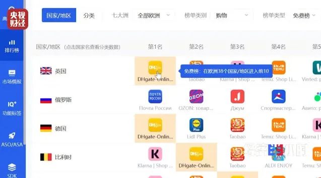美国政府对中国产品加征高额关税后,意外助推多家中国跨境电商走红海外。4月13日起,一款名为敦煌网的中国应用程序在海外迅速走红。数据显示,它在美国苹果应用商店的免费应用排名,从原本的352名,突然连续多日飙升到第2名,仅次于ChatGPT。不仅如此,它还在全球98个国家和地区,占据购物类应用排行榜榜首。