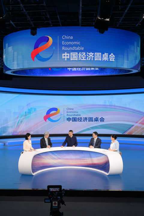 嘉宾们在第十五期“中国经济圆桌会”交流发言。新华社记者李贺摄