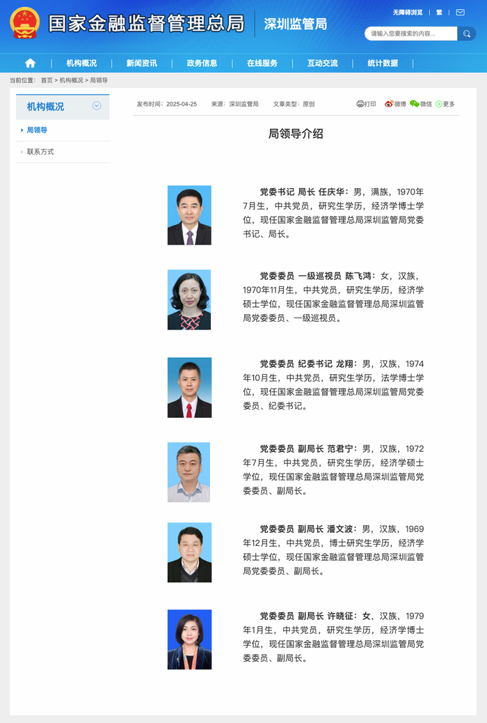 4月27日,国家金融监督管理总局深圳监管局网站更新显示,许晓征已正式就任党委委员、副局长。此次人事变动预计将进一步加强深圳地区的金融监管效能。