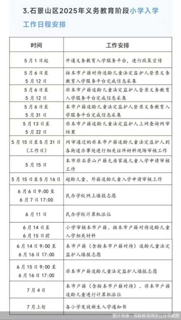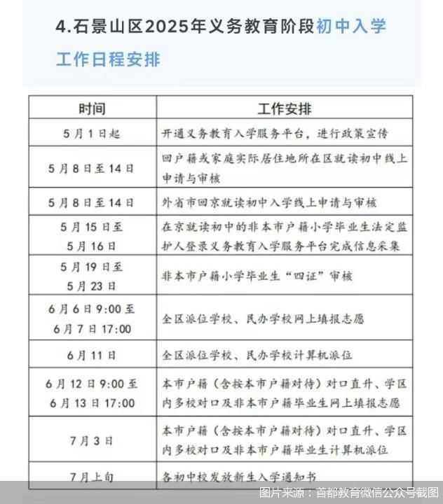 石景山区发布2025年义务教育阶段入学方案