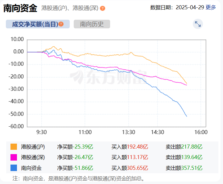 截至发稿,南向资金净卖出额已超过50亿港元,这一数据反映了近期港股市场的资金流向情况。