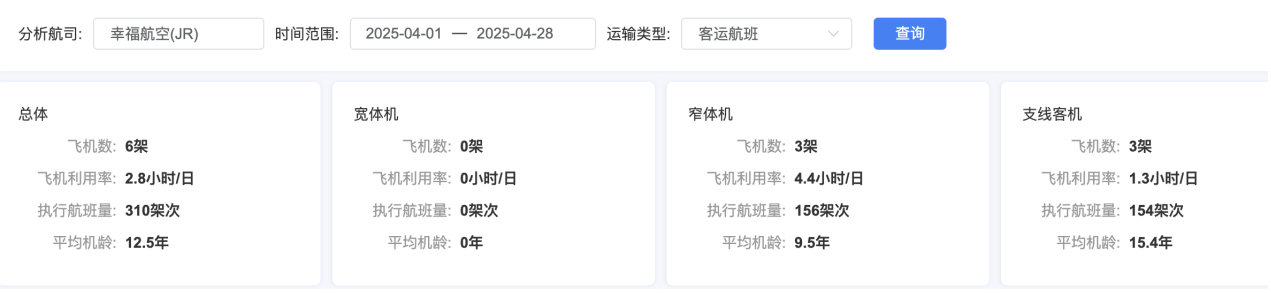 值得注意的是,来自航班管家DAST的统计数据显示,2024年12月以来,幸福航空实际运营客机仅6架。这也意味着,在此次停航之前,幸福航空的大部分新舟60客机已暂停运营。