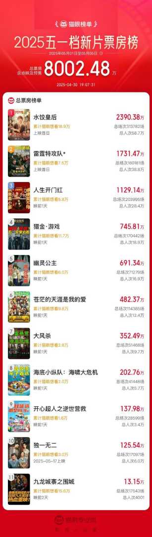 2025年五一档总票房突破8000万,电影市场强劲复苏