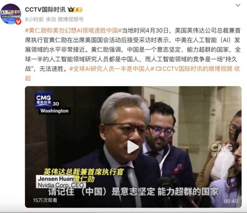 黄仁勋最新涉华表态,聚焦中美AI竞争。