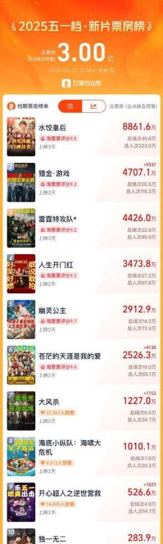 2025年五一档新片总票房突破3亿