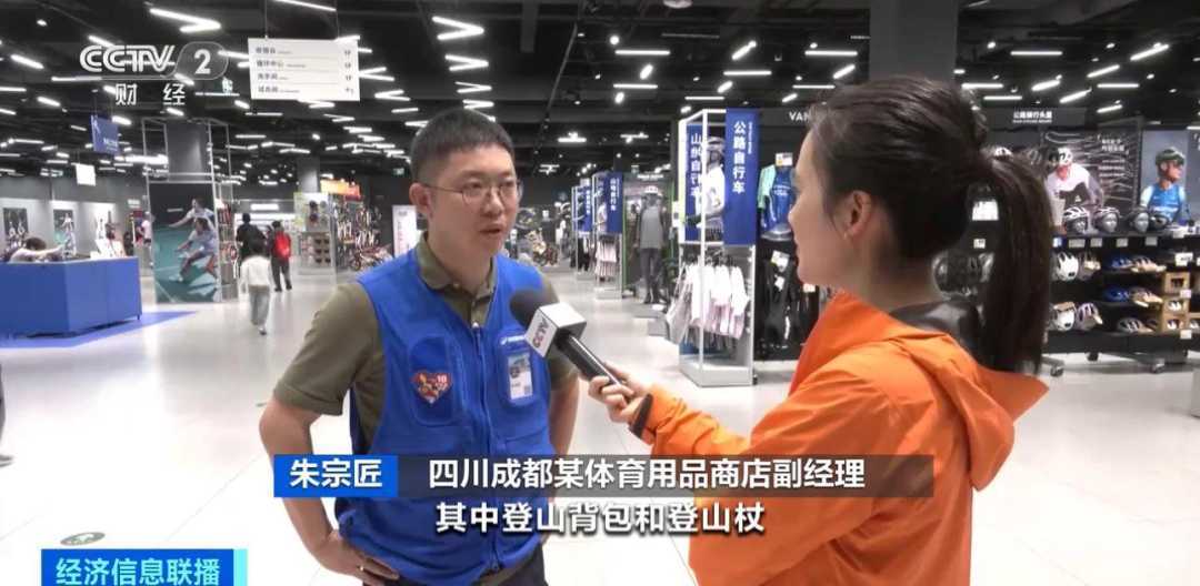 四川成都某体育用品商店副经理朱宗匠:目前登山和徒步装备在户外用品销售中占比超过40%,其中登山背包和登山杖增长超过30%,市场潜力巨大。
