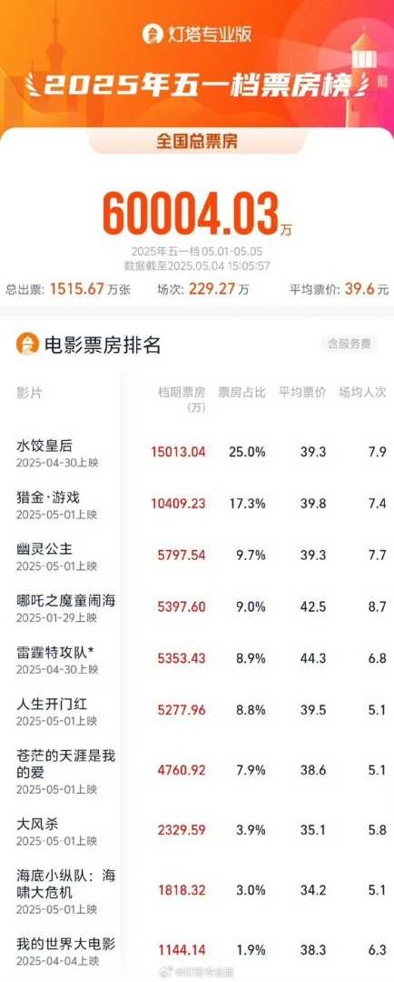 2025年五一档电影票房突破6亿,《水饺皇后》领跑