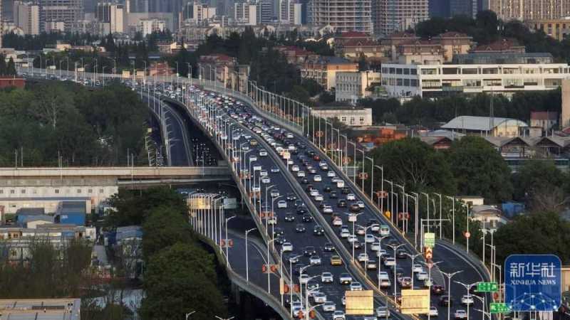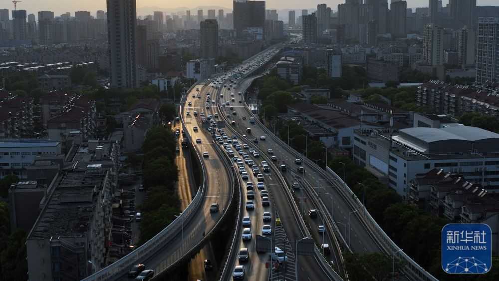 ↑ 南京应天大街高架桥上,车流滚滚,显示了城市交通的活力(无人机照片)。新华社发(孙忠南摄)