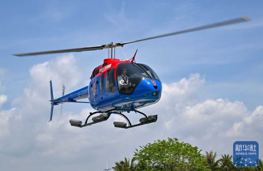 直升机观光成为“五一”期间海南旅游的一大亮点,吸引了大量游客前来体验。