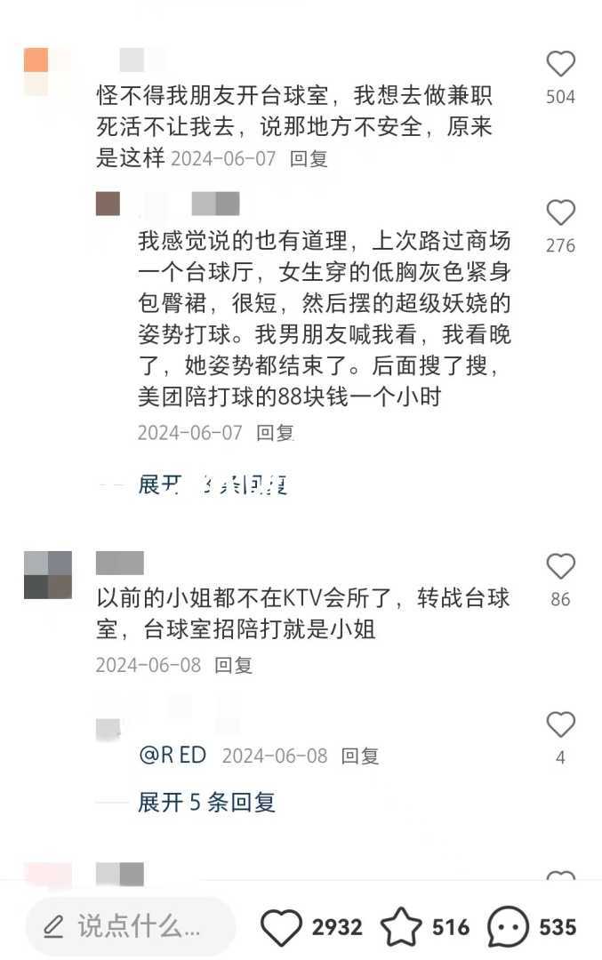有网友爆料称,台球陪练不仅穿着暴露,消费价格也十分昂贵。更有网友留言说:“老公每月在台球室消费上万,纯打球怎可能这么烧钱?”