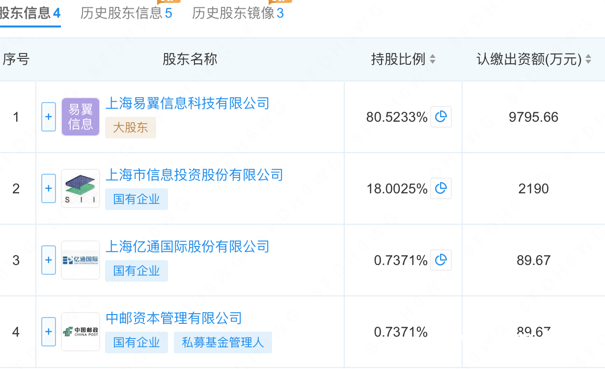 企查查信息显示,上海付费通原有七名股东。其中,本次变更的易翼信息、上海市信息投资分别为其第一大股东和第二大股东,前者股权增加30.508%,后者股权减少23.866%,剩余转让的6.642%股权分别来自天翼电子商务、银联商务以及上海水务。