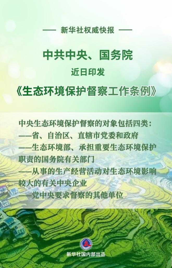 中央生态环境保护督察是党中央推进生态文明建设的重要行动,旨在强化环境保护责任。近日,中共中央、国务院正式发布了《生态环境保护督察工作条例》。