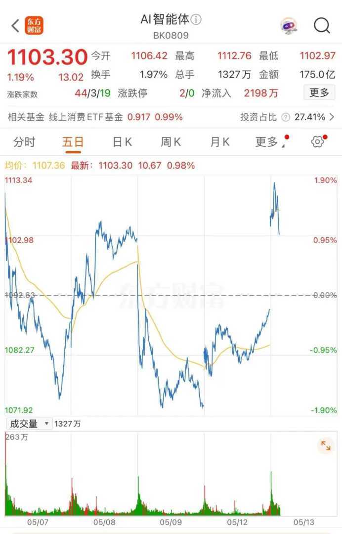 受此消息影响,5月13日早盘,AI智能体概念股拉升,酷特智能、南兴股份等多股涨停。