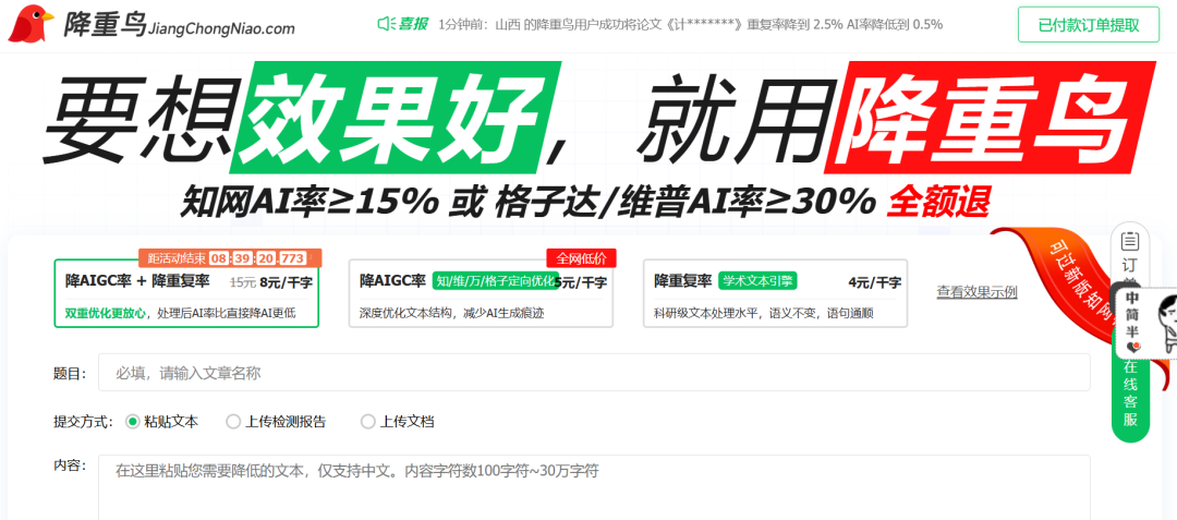 一位“降手”表示,其方法是对着报告修改,但“如何减少AI特征”说不清楚,仅凭“感觉”。此外,“AI降AI”服务也出现,如“降重鸟”网站提供拟人服务,价格较高。