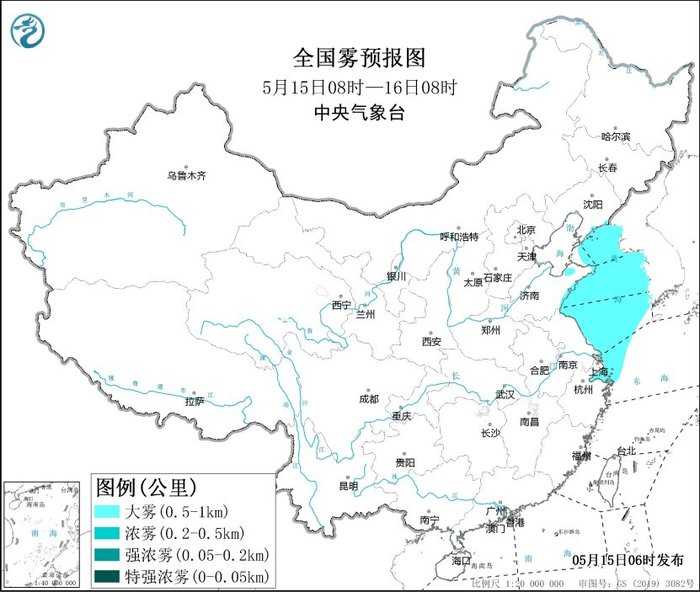 预计,5月15日白天至夜间,渤海海峡、黄海大部海域、成山头附近海域、长江口及杭州湾附近海域、舟山群岛附近海域、上海港、宁波港等地将遭遇能见度不足1公里的大雾天气,对交通运输产生一定影响。