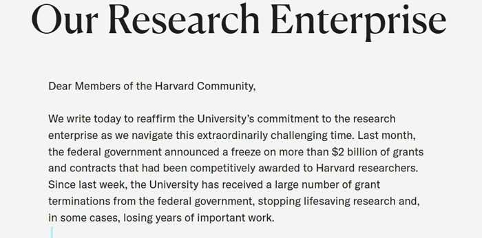 哈佛大学应对联邦政府拨款暂停,额外拨款2.5亿支持研究项目