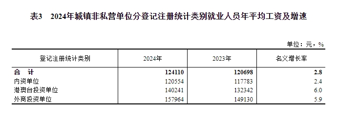 2024年,全国城镇非私营单位就业人员年平均工资为124110元,名义增长2.8%,实际增长2.6%。这一数据反映了国内就业市场的整体薪资水平。