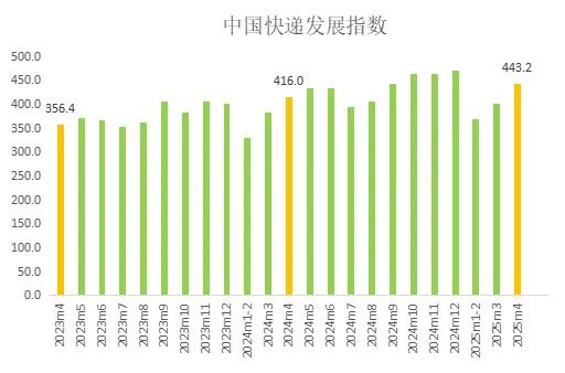 图1 2023年4月-2025年4月中国快递发展指数 图源:国家邮政局官方微信