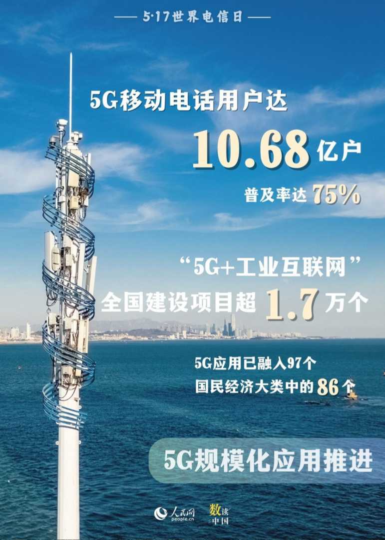 5月17日是世界电信和信息社会日,我国通信业实现稳步增长,5G、千兆光网等网络基础设施日益完善,为制造强国、网络强国和数字中国建设提供强大动力,赋能经济社会发展取得积极成效。
