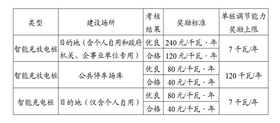 (二)V2G调节能力年度奖励。智能充(放)电桩V2G将根据电网企业的调节能力考核结果获得奖励,奖励期同样为3年。值得注意的是,个人自用非智能充电桩需在2024年底前完成智能充电桩替代,才能获得奖励;2025年及以后完成替代的,将不再享受奖励。