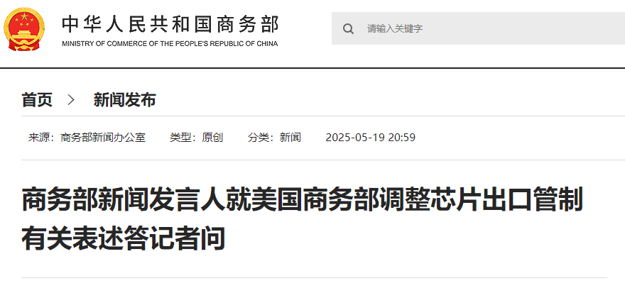 商务部新闻发言人就美国商务部调整芯片出口管制有关表述答记者问。