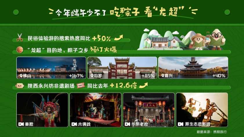 广东佛山的叠滘龙船赛尤为引人注目,带动了佛山整体旅游预订量的显著增长。湖南汨罗和浙江嘉兴也迎来了端午旅游热潮。