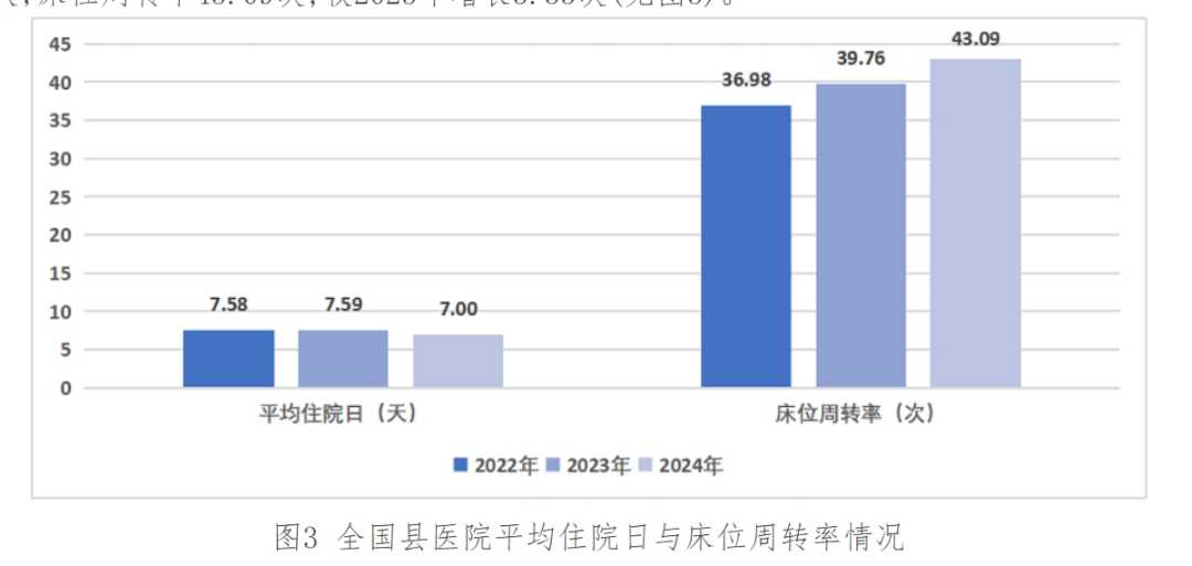 除了提升医疗服务能力,县医院还在运营管理上提质增效,减轻居民看病就医负担。2024年,全国平均每家县医院编制床位和开放床位分别为548张和600张,患者平均住院日为7天,床位周转率为43.09次。25个监测单病种平均住院费用较2023年度有所下降,其中8个病种的住院费用降幅超过10%。