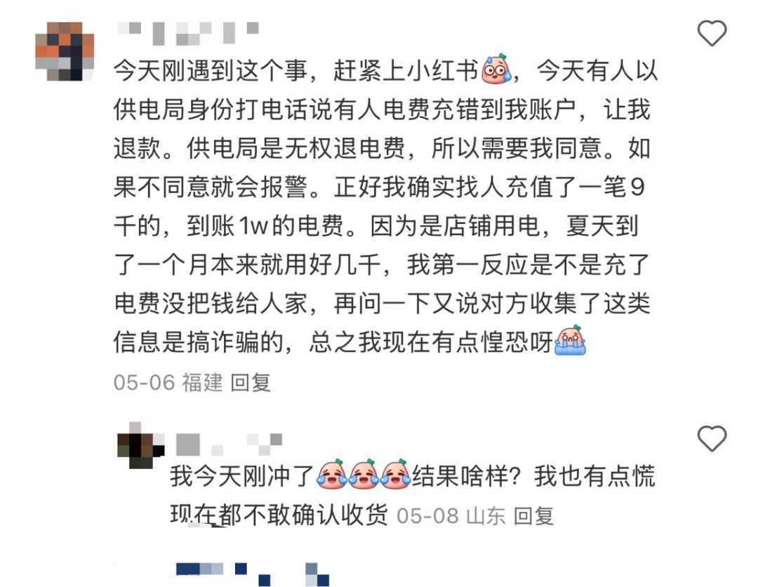 一位网友分享了她的经历:她通过第三方渠道以9折优惠充值9000元电费(实际到账1万元),但随后接到供电局电话,称电费充错账户,要求协助退款。工作人员透露,这些充值订单涉及诈骗资金。