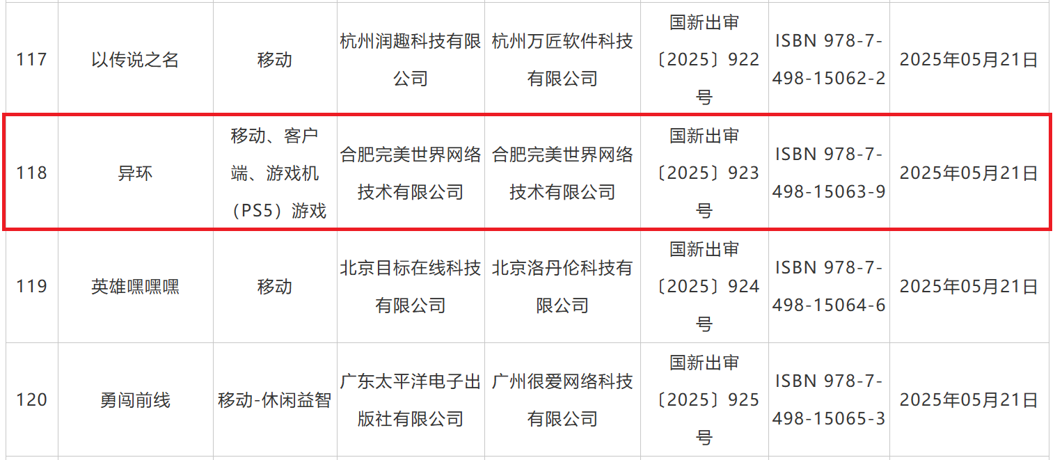 5月21日,国家新闻出版署公布5月份国产网络游戏审批信息,共有130款游戏获批,包括四三九九的《传说旅人》和完美世界的《异环》等,显示出国内游戏产业的蓬勃发展和创新能力。