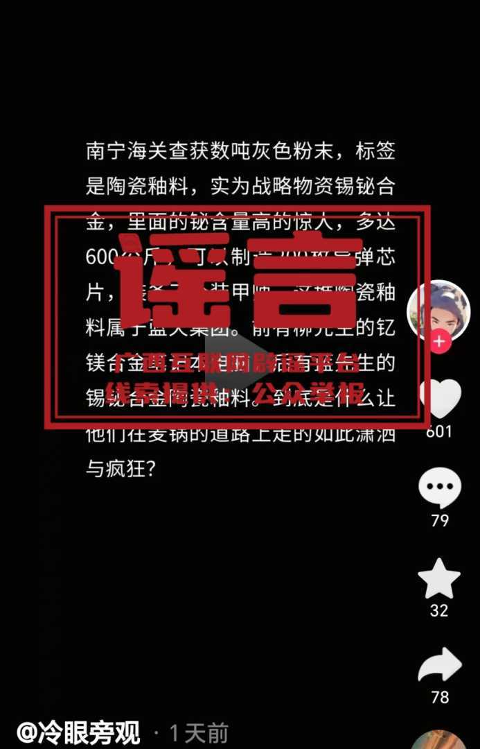 网传南宁海关查获“25吨锑锭”“30吨灰色陶瓷釉料粉末”均为不实传闻